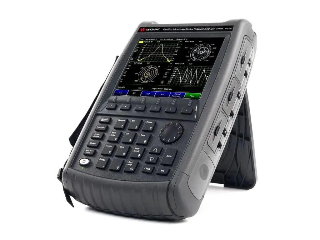 Keysight N9928A FieldFox Handheld Microwave Vector Network Analyzer, 26.5 GHz. A lightweight, durable, full two-port network analyzer, cable and antenna analyzer, distance-to-fault tester, power meter, and vector voltmeter